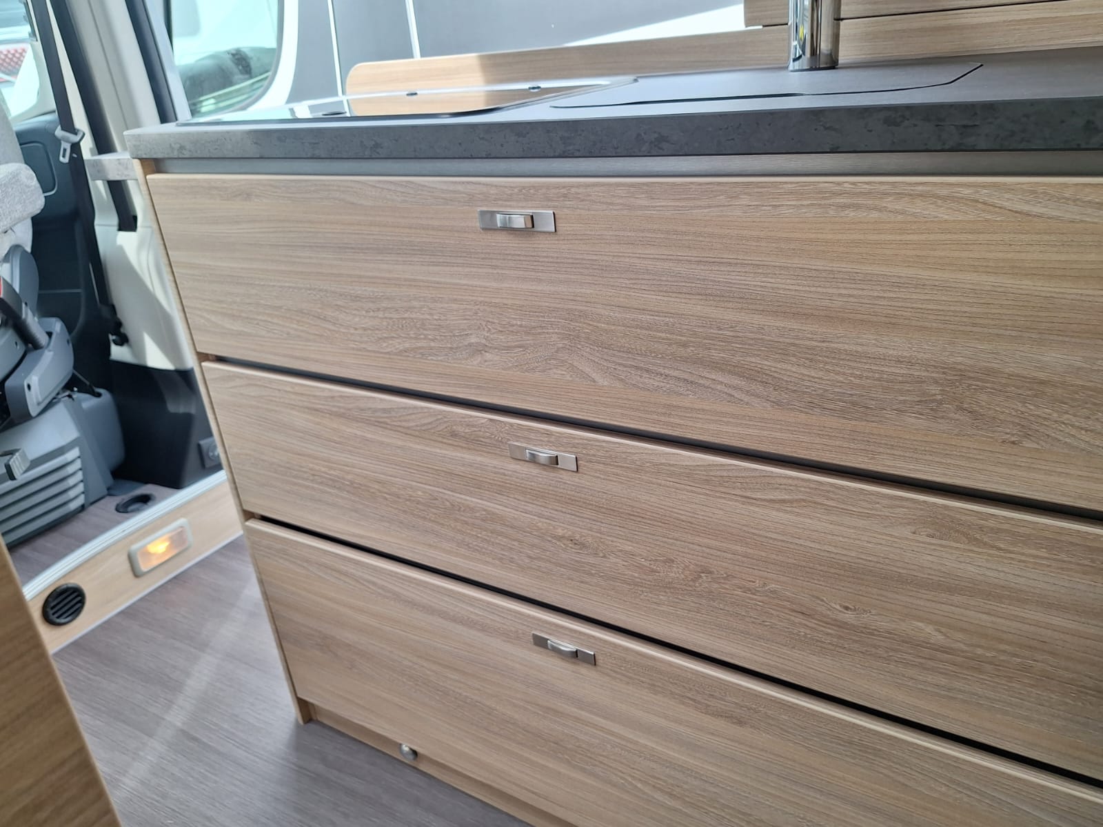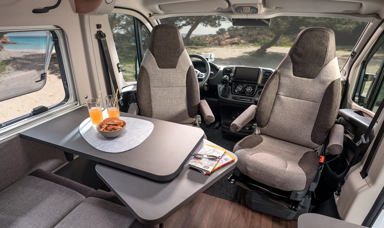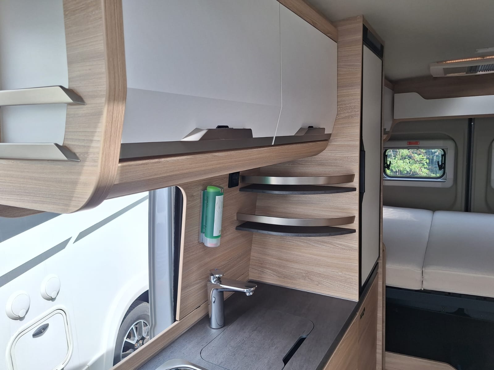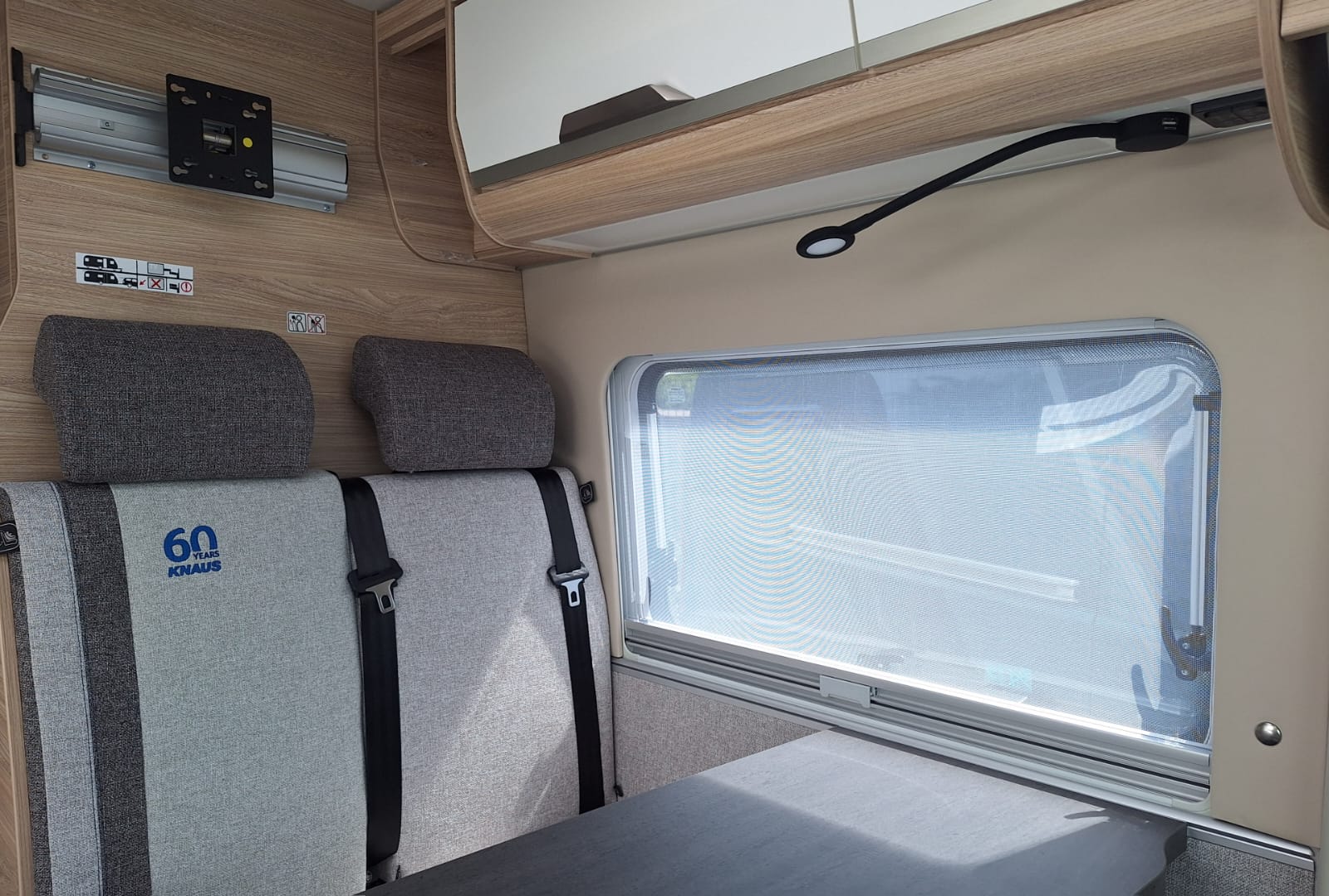 It has enough room for a comfortable double bed and a spacious lounge area, but is very compact and well‐designed for driving down narrow streets or fitting into a roadside parking space.