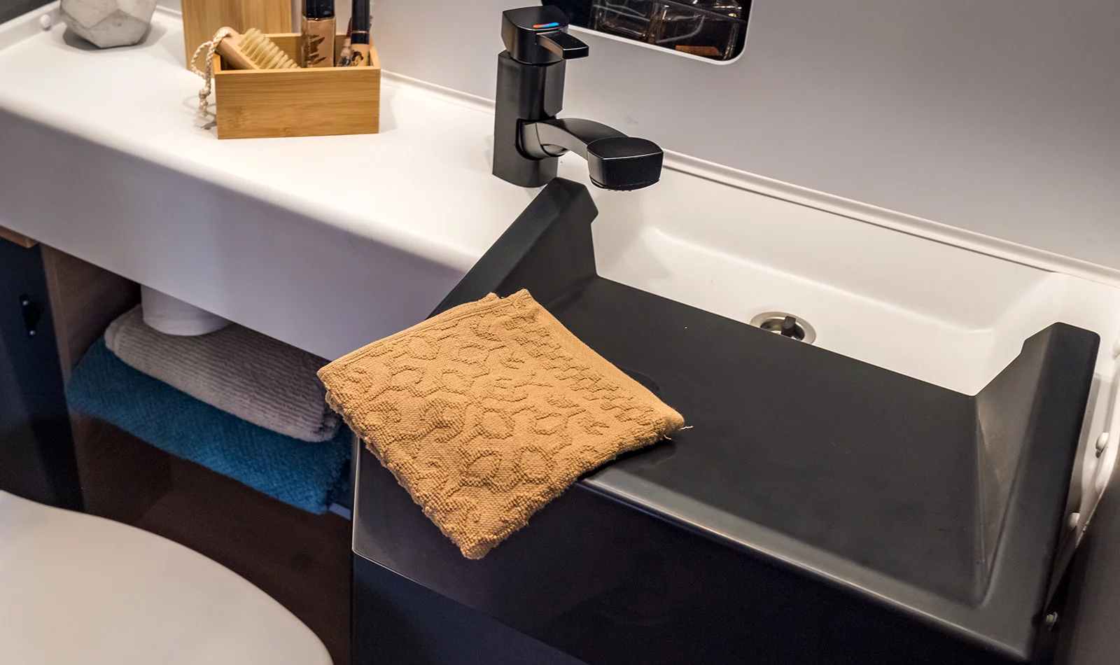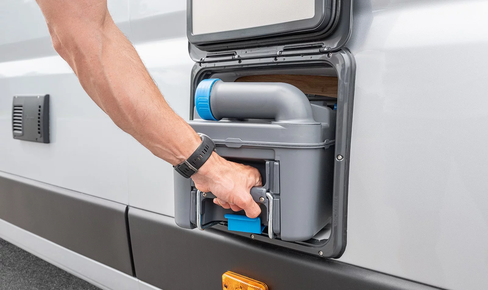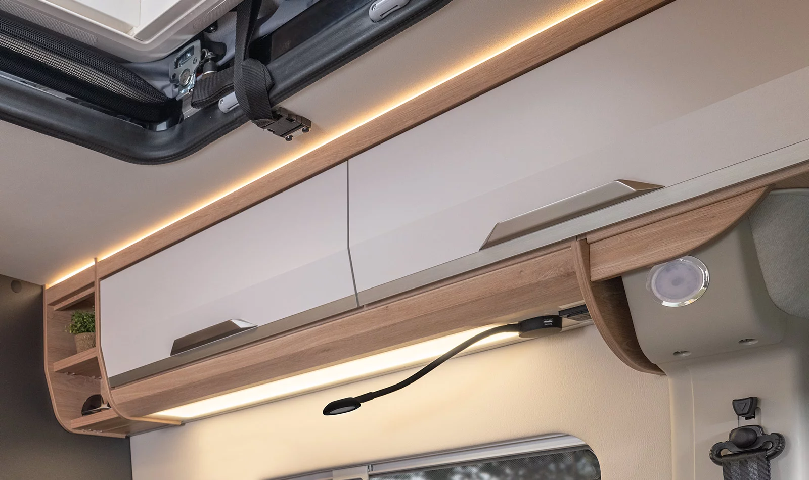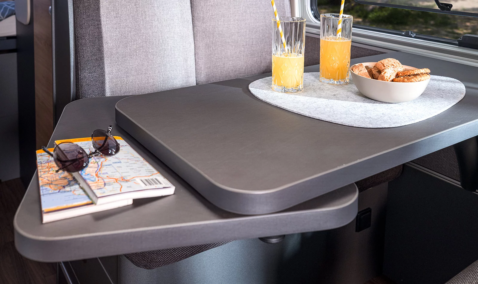 It has enough room for a comfortable double bed and a spacious lounge area, but is very compact and well‐designed for driving down narrow streets or fitting into a roadside parking space.