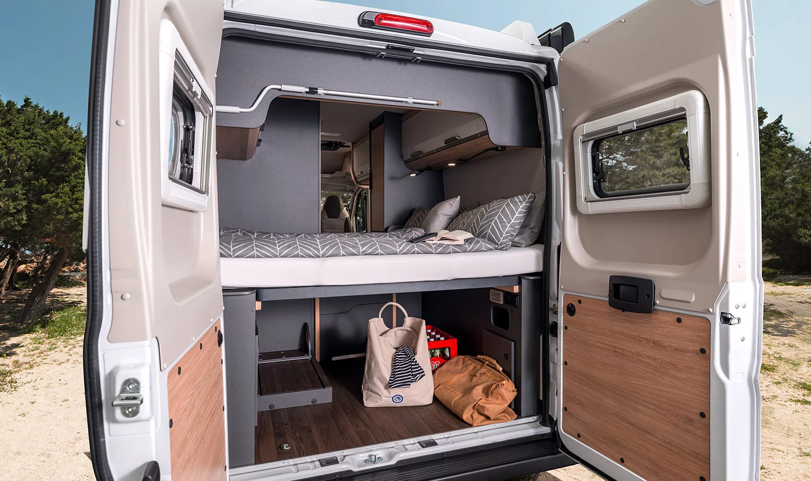 Fixed Double Bed at the Rear of the Campervan